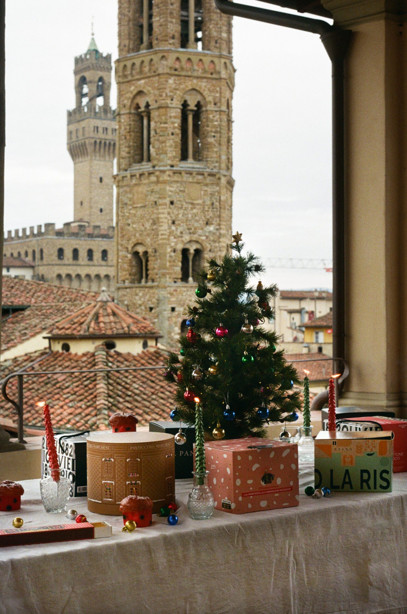 A special mention goes to our neighbors in Florence, whose Panettone della Gherardesca this year was a team-wide hit. Developed by the Four Seasons Hotel Firenze executive team and local artisanal bakery Leonardo Firenze, this canditi-free panettone sports properly dark chocolate chunks and juicy apricot pieces. On top, a crunchy, colomba-like glaze is studded with sweet Puglian almonds and Brazil nuts. In a pretty red box with gold details inspired by Florence, this top-notch option is available only to those lucky enough to go get one in person.