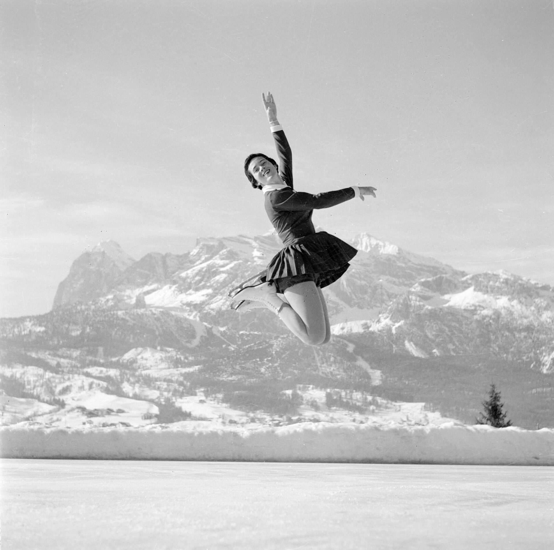 A skater competing during the 1956 Cortina Olympics; Photo Courtesy of Archivio Storico Zardini