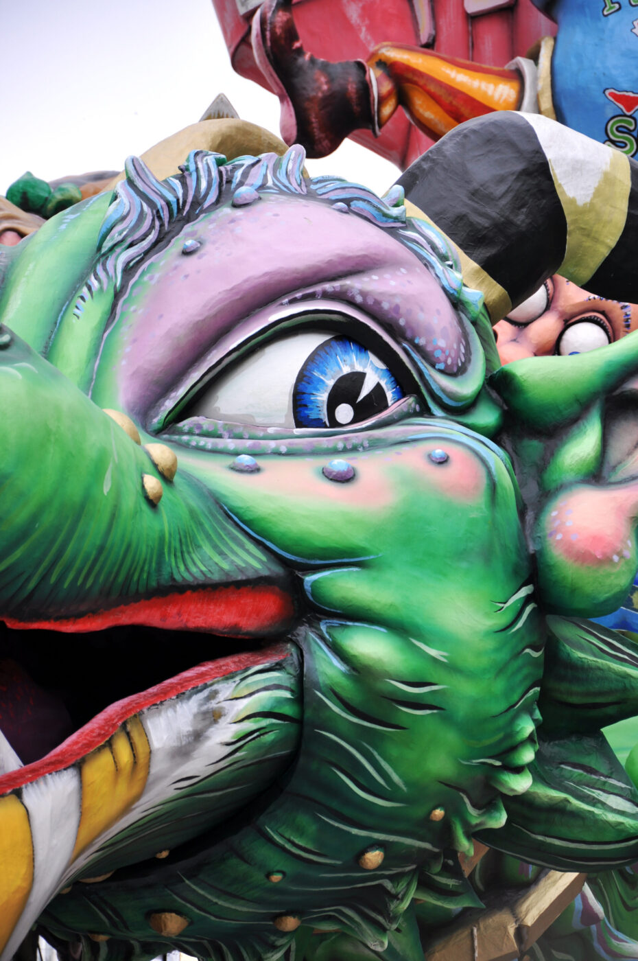 And so, I return to my first memory: the papier-mâché floats. While common in places like Viareggio, in Putignano, local artisans work for at least five months in their workshops to create them. They layer newspaper strips soaked in water and flour glue onto oil-covered plaster casts. Painters then turn these structures into rolling editorials, using intricate craftsmanship to deliver social commentary on everything from local politics to the climate crisis.