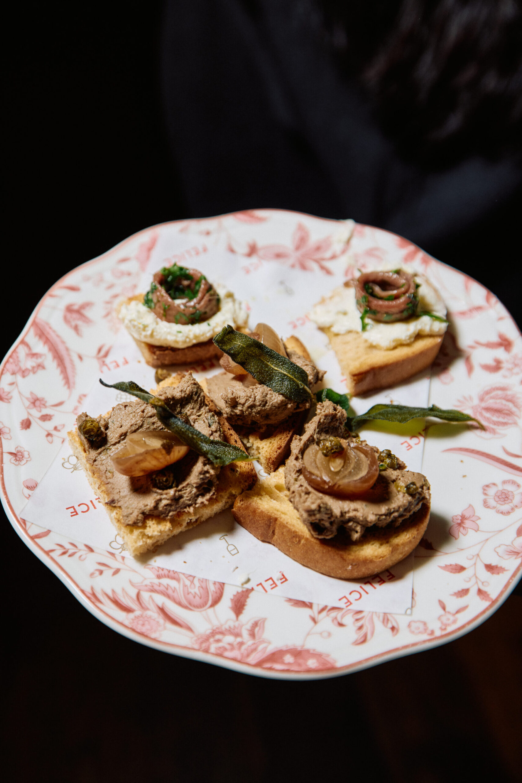 Crostini neri (chicken liver paté); Courtesy of Felice