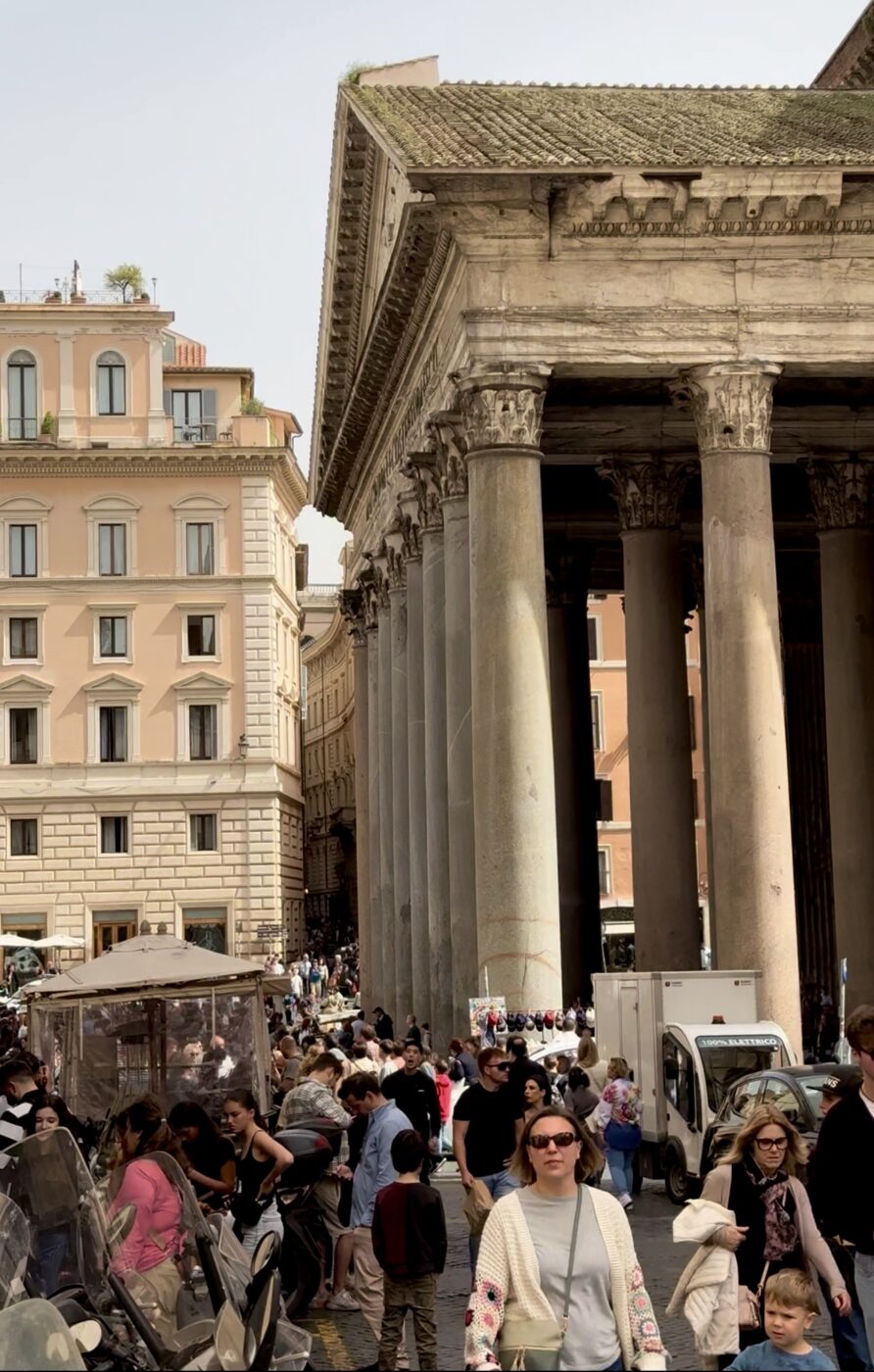 I vicoli acciottolati del centro storico iniziano a riempirsi di gente e i gruppi si accalcano su entrambi i lati. La merce dei negozi vira decisamente verso un pubblico più turistico, con magliette e borse decorate con la scritta “Roma” allineate in fila o limoncelli che dichiarano di avere una vera eredità caprese esposti nelle vetrine. Basta svoltare un angolo per imbattersi nel capolavoro barocco che è diventato un simbolo della città.