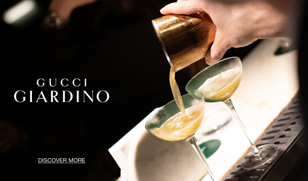 To sit on the terrace of Gucci Giardino as the late afternoon sun hits the rusticated stone of the Palazzo Vecchio is to witness a collision of eras. In Piazza della Signoria—a square traditionally defined by the towering architecture of the Renaissance—Gucci’s all-day café and cocktail bar introduces a different, more contemporary vibe. Once a florist shop, the space has now emerged as a laboratory for the future of Italian mixology. Here, the cocktail menu is built around familiar notes and precise composition, with each drink crafted to create immediate connection while avoiding anything that feels expected—a concept that sits at the core of Gucci Giardino team’s approach.