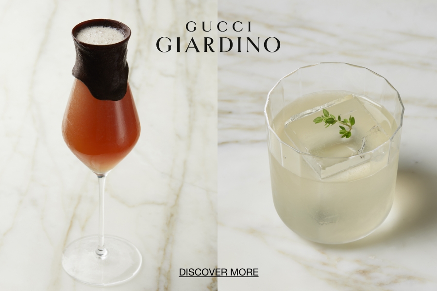 Also central to Gucci Giardino’s elevation of the craft is an adherence to seasonality, a principle that usually goes unconsidered at the classic Italian bar. The Giardino’s offerings include “Seasonal Cocktails” and “Seasonal Mocktails”, the former to feature a Martini, currently in development, that redeems the lemon twist. Using the entire citrus, the bar infuses gin with lemon zest and then takes the parts that are usually thrown away to create a bitter, complex infusion in dry vermouth. The finishing touch is a sartorial sleight of hand that blends olive oil with the citrus-infused spirit remains, freezing it into a fat-wash that lends the cocktail a silky texture.