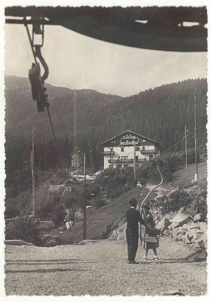 Seggiovia di Pradalago ski lift in front of Pensione Bellavista, m.1553; By Albertomos - Collezione cartoline Albertomos, Public Domain, https://commons.wikimedia.org/w/index.php?curid=8646169