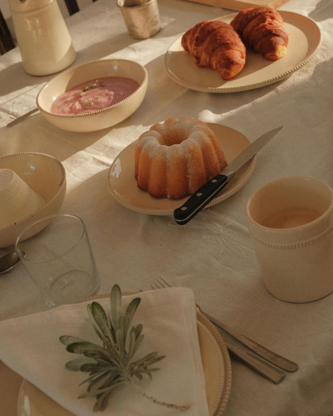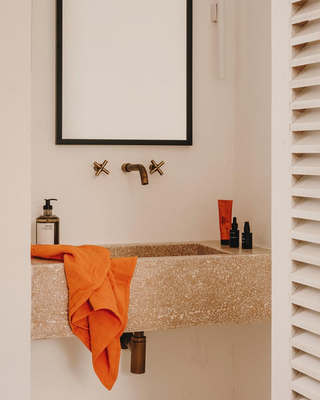 Every detail works to create a welcoming environment where natural light is a core feature. For Giuseppe, hospitality is about “making people feel at home, but in a special place that isn’t quite home.” It’s a space where guests find comfort, warmth, and familiarity, but also experience the “magic and uniqueness of being somewhere different.” This balance is created through careful attention to detail—from bespoke locally made sinks to vintage and design furnishings that furnish the minimal, bone-colored interiors.