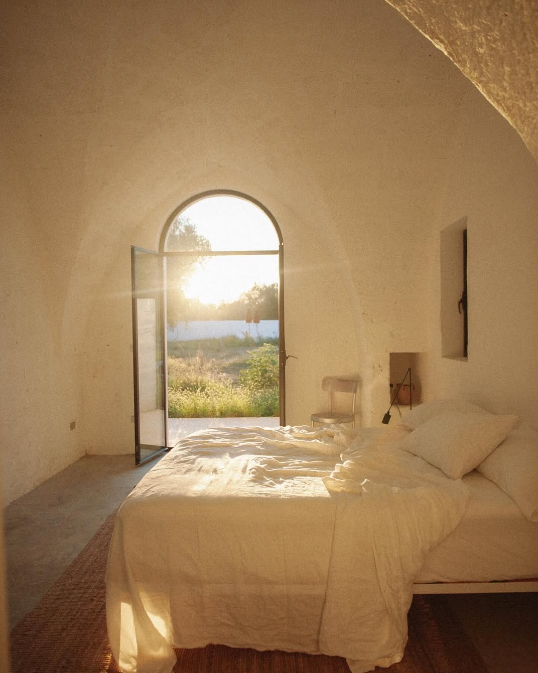 While you’re out and about, pick up some of the local specialites—taralli and frisella, fresh fava beans, caciocavallo cheese, and wines like Negroamaro or Primitivo—to bring back to the borgo and make a little aperitivo as the sun sets. Giuseppe’s best advice is to spend some time outside, because the ever-present light in this part of Puglia is “truly magical, glowing softly through every hour and deepening the feeling of being intimately connected to this beautiful land.”
