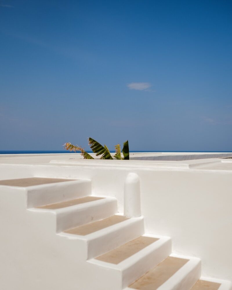 Stone steps wind between terracotta floors and plastered walls. Here, the materiality of Salina—the stone, the ceramics, the soft hues of plaster—gives each of the hotel’s 30 rooms a distinct character. This same sense of place extends beyond the rooms, too. “Our wellness philosophy is rooted in holistic principles and the natural bounty of Salina,” the family explains. Their open-air spa is tucked among lemon, apricot, and mandarin trees, dotted with antique tools and Sicilian majolica tiles. Pools offer thalassotherapy, and treatments draw on the island’s natural bounty—from olive oil to capers, prickly pear, wild fennel, and lemon. One of the coolest features is the steam bath, shaped like the 3,500-year-old tholos (thermal chamber) discovered on the nearby island of Lipari.