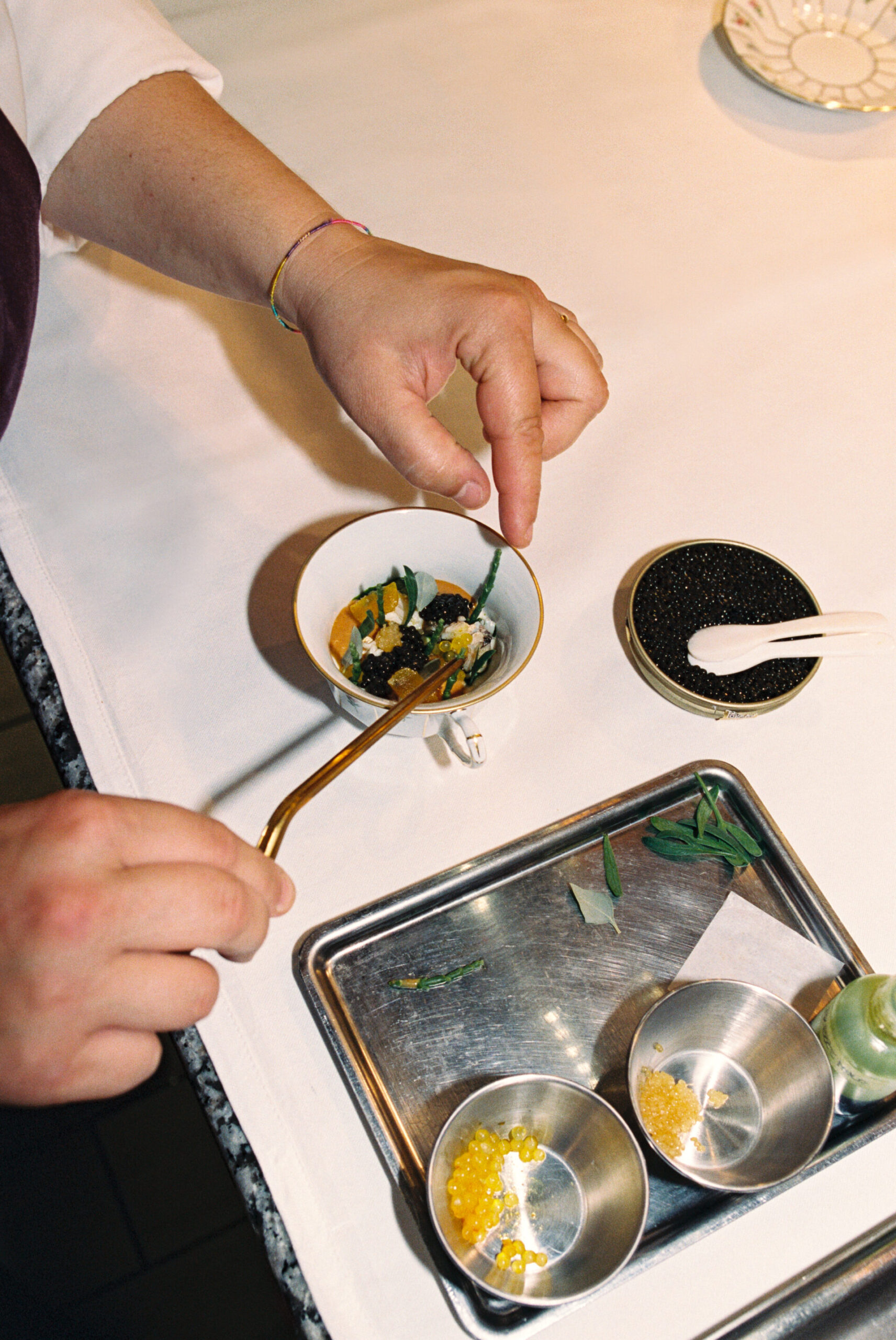 One of Oro’s standout dishes is the oyster with egg zabaglione and cuttlefish ink. “That dish alone could have a thousand variations. There are a thousand types of oysters—if you change the oyster, you get a thousand different versions of the same dish.” This flexibility and openness to evolution define her culinary philosophy. “Massimo [Bottura] does the same thing. Even his most iconic dishes have evolved over time. Techniques change, things get updated. If you adapt and modernize how you do things, the dish improves.”