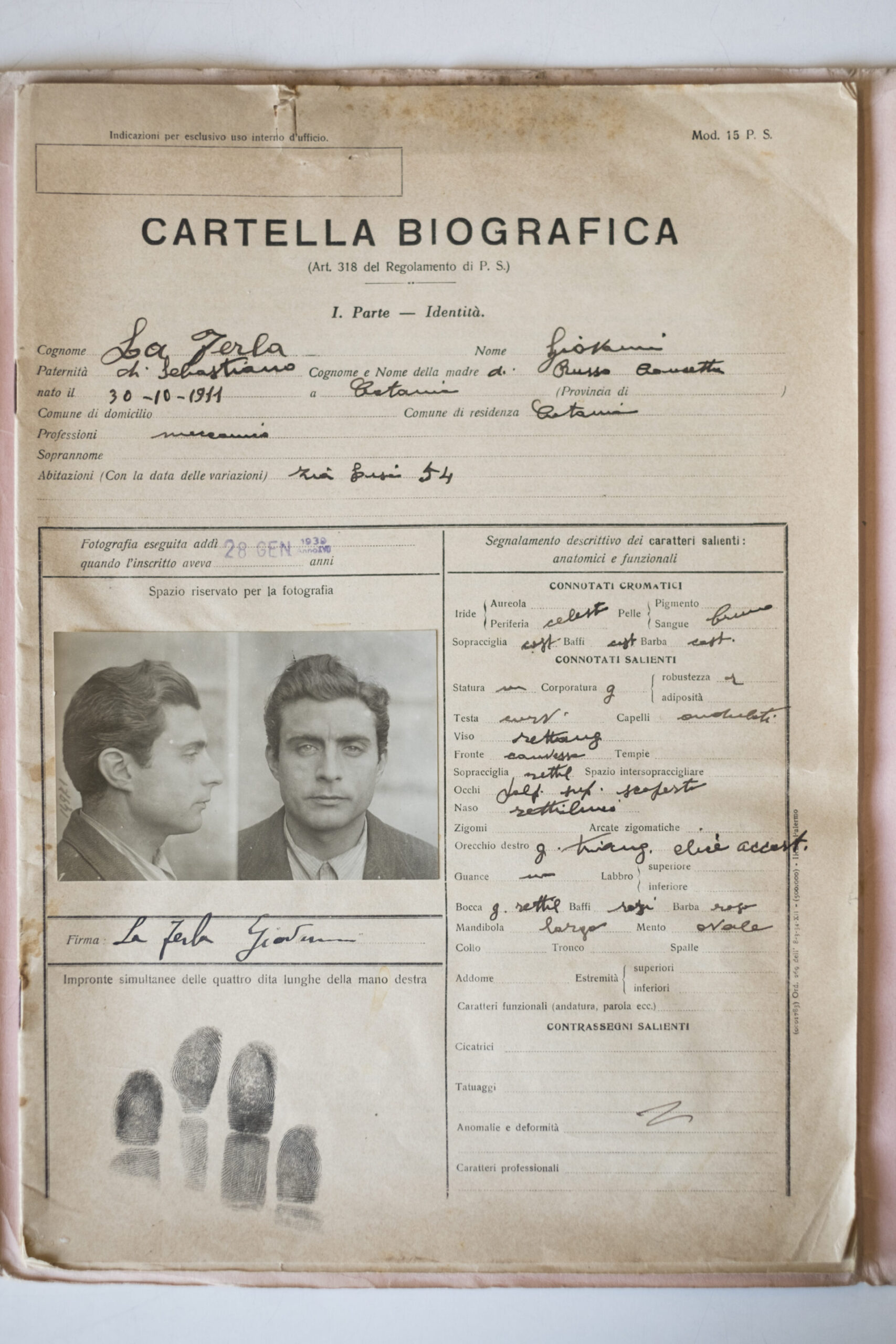 *The text dictated by Questore Molina in the short narrative is an excerpt from the real report sent to the Provincial Commission for Internal Exile, attached to the case files of all the convicted men from Catania.