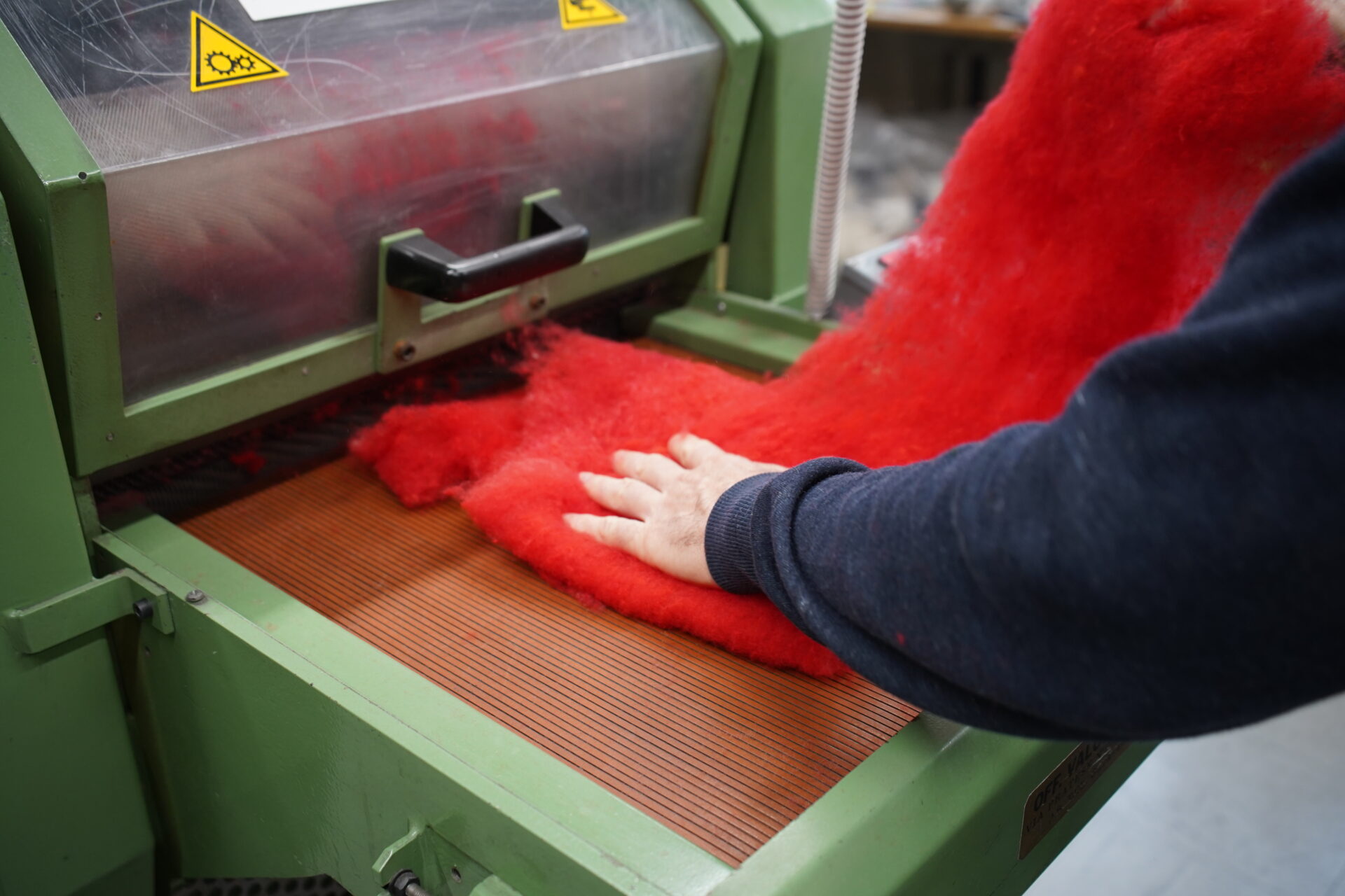Entrepreneurs are also using the district’s dense supply chain to build new brands around longevity and circularity. Rifò, founded in 2017 by Niccolò Cipriani and Clarissa Cecchi, reinterprets traditional regeneration methods to make contemporary staples: well-cut shirts, jackets, pants, hats, and more in wool, cashmere, cotton, silk, and denim. “Until a few years ago, regeneration was seen as marginal—a necessity rather than a value,” said Eleonora Marini, Rifò’s communications lead. “We tried to put it back at the center when sustainability in fashion was still a niche topic.” The company concentrates nearly every step—sorting, spinning, cut-and-sew, finishing—within about 30 kilometers through a vetted network of workshops, and it invests in the skills pipeline with its Nei Nostri Panni program, a training initiative for people in vulnerable situations, particularly migrants. “Every six months we select new participants for a paid path, with local institutions, private partners and district companies,” Marini explains. They’ve also developed an in-house repair service that extends garment life and sustains trades, like professional darning, that are increasingly scarce elsewhere.