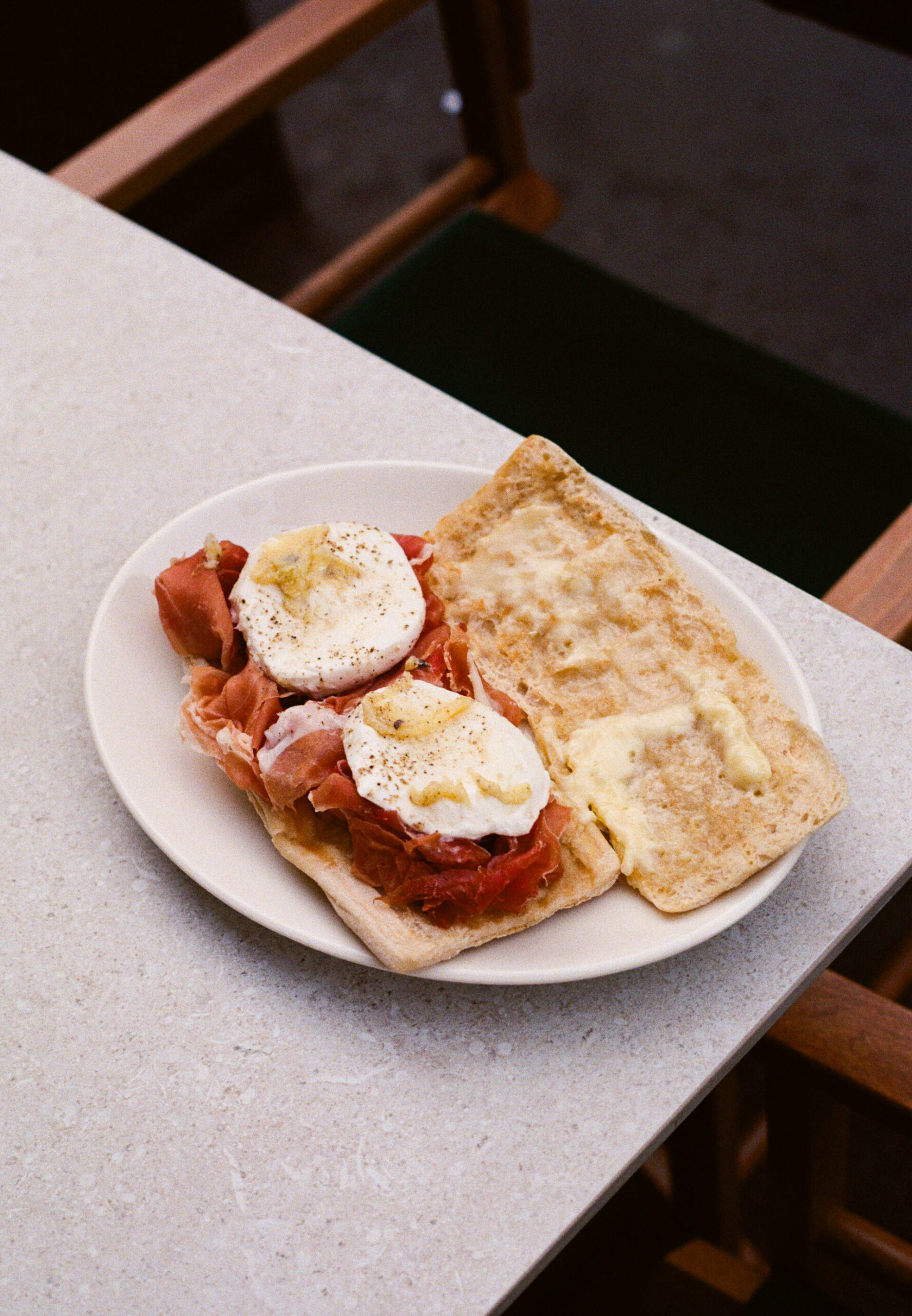 De Santis panini are truly Milanese: rich with top-quality fillings, an unexpected twist in the ingredients, balanced flavors, and thin, crustless bread that is lightly toasted. They are indulgent yet elegant, almost rigorous—a perfect example of applied design and non-trivial Made in Italy. The Prosciutto di Parma comes from Mario Gallina, the cheeses from the Gennari dairy, and the pancetta from the San Patrignano community in Romagna (to whom the Sanpa sandwich, with pancetta and melted semi-aged cheese, is dedicated).