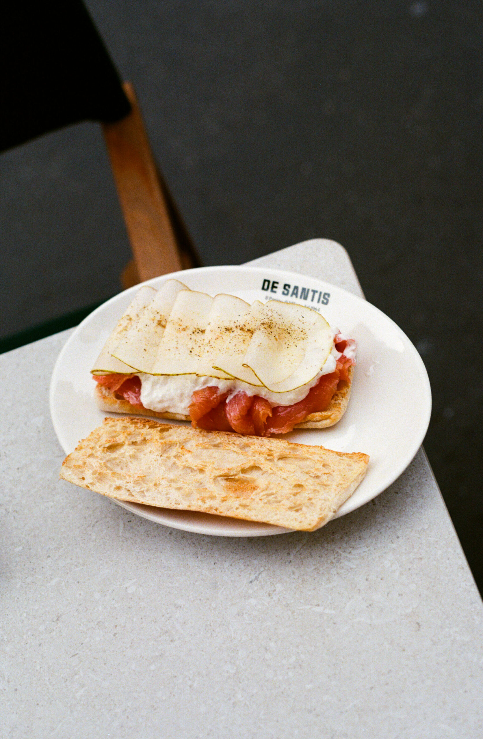 More than 60 years have passed since that initial intuition. Milan is no longer what it once was, but De Santis is still there. In the historic location, which remains intact, you still find the dark wood paneling, the simple stools, and the shelves to perch on. There, time has stopped. Meanwhile, the De Santis family has grown: there are now two locations in the city (a spacious, bright one in Brera and one on the rooftop of La Rinascente near the Duomo), one in Rome, and the next stop will be London, in Mayfair. Because not all sandwiches are created equal—and those from De Santis taste of Milan, which is exactly why they can travel the world.