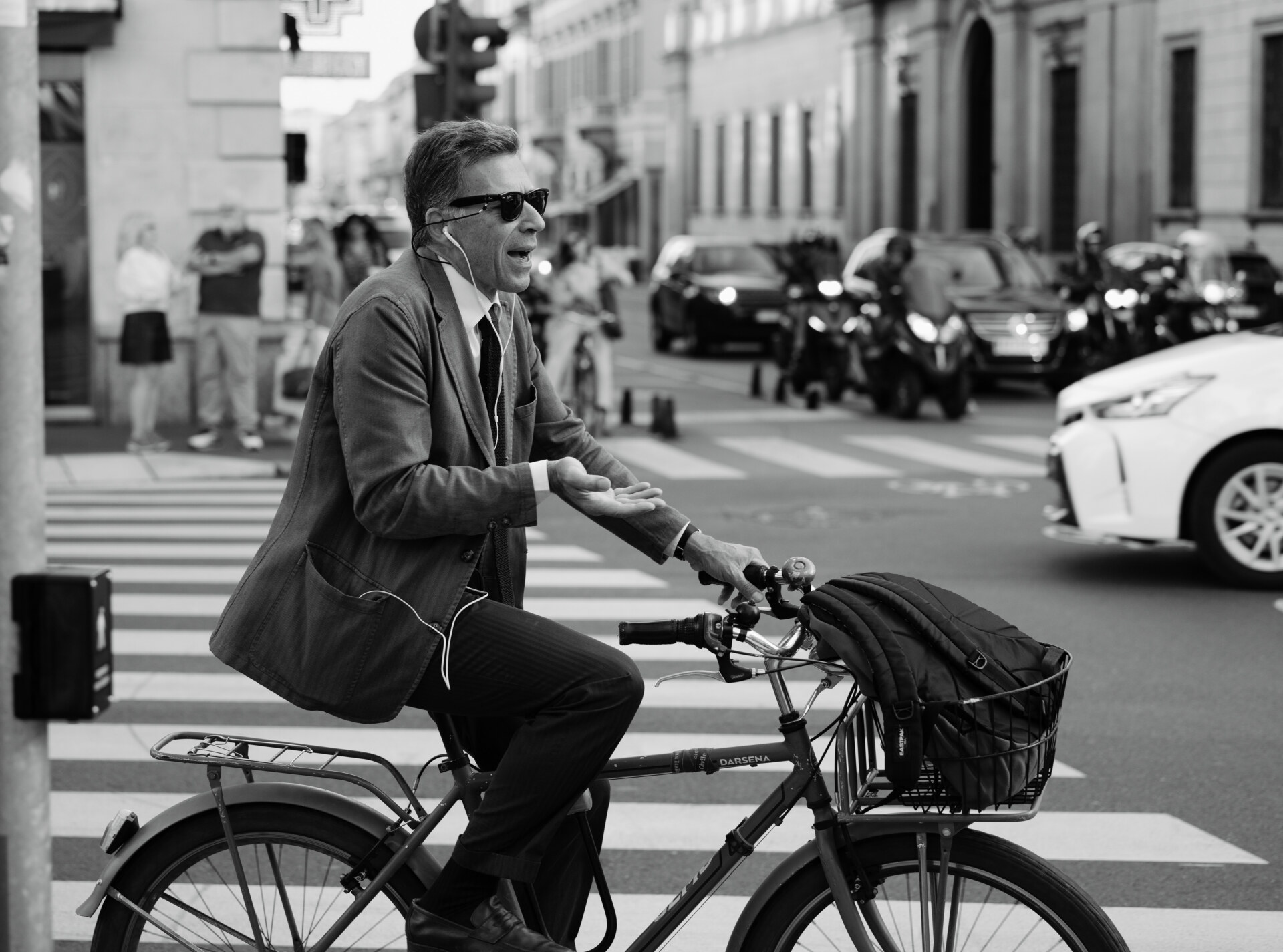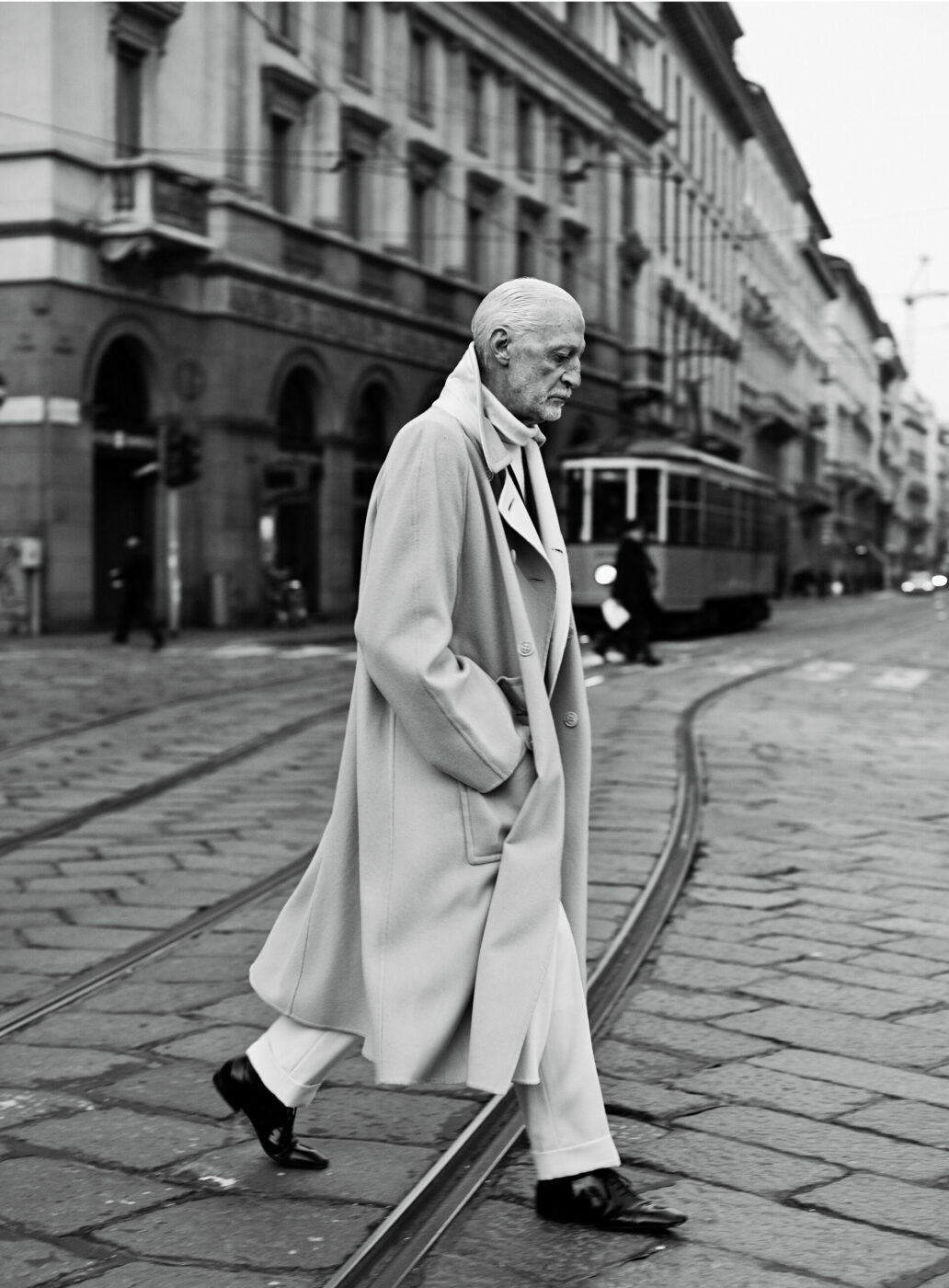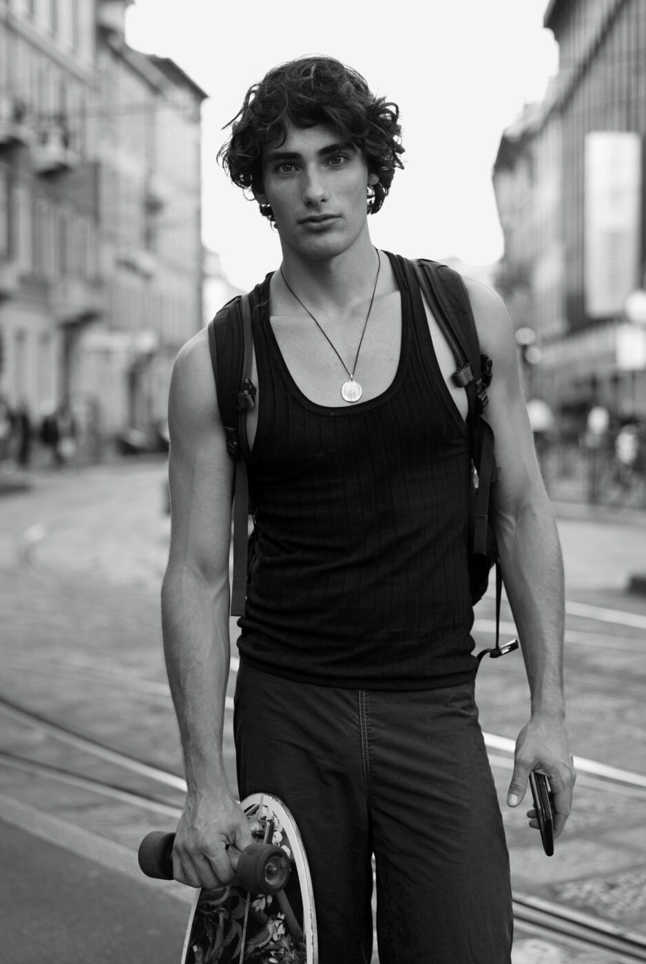 It’s this unwavering faith that really comes across in Schuman’s work, a belief in the beauty of the everyday. In a city like Milan, this devotion becomes, like its population, densely concentrated. Tortoiseshell sunglasses, a woven beanie, a pair of sparkling wedge heels—every person, knowingly or not, carries markers that make them who they are. For Schuman, the challenge lies in capturing them, no matter how fleeting the acquaintance may be. “That’s the part I really like about it,” he says, smiling, “It’s having to make those fast decisions like, ‘Okay, I’ve got a person. I’ve got this scene. This is where the light is. This is the setting.’ Then quickly, I’ve got to figure out: ‘How do I make the best of this situation?’”