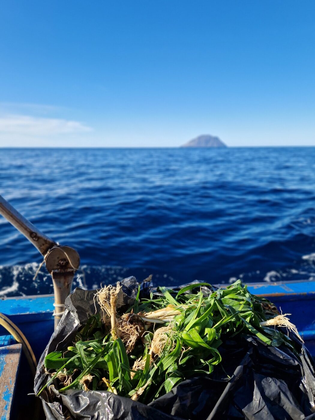 Few vegetables capture Filicudi’s kitchen—and its challenges—better than aglioporro, the island’s most emblematic wild leek. It grows in abundance at Siccagni, a rugged district that plunges straight into the sea, and gathering it is no simple task. Murabito and her partner, fisherman Antonello Bonica, reach it by boat: he scrambles up the rocks, fills sack after sack, and tosses them down to her on the deck. She spends days cleaning the haul before freezing it, ensuring she can make aglioporro fritters for guests year-round—and for us the very next day.